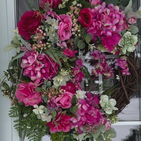 Add a pop of color and style to your decor with our Beautiful Pink Floral Grapevine. With its vibrant flowers and delicate grapevine, it's the perfect statement piece for any door. Made to impress, this stunning piece will elevate any space with its eye-catching design.